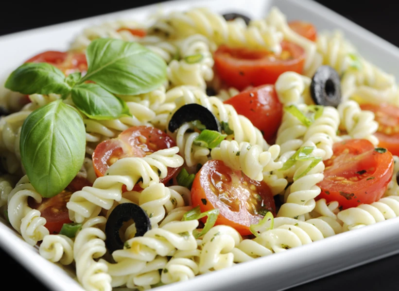 Un assortiment riche en couleurs et en goût pour démarrer en beauté : Salade de pâtes au surimi, Salade de carotte vinaigrette au miel, Éventail de tomates, mozzarella & pesto de basilic, Salade de pommes de terre à l’échalote