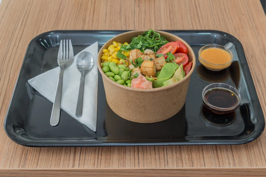 Conditionné en plateau individuel jetable, ce repas pratique et complet est idéal pour vos déjeuners d'affaires, sorties en groupe ou repas livrés en entreprise.